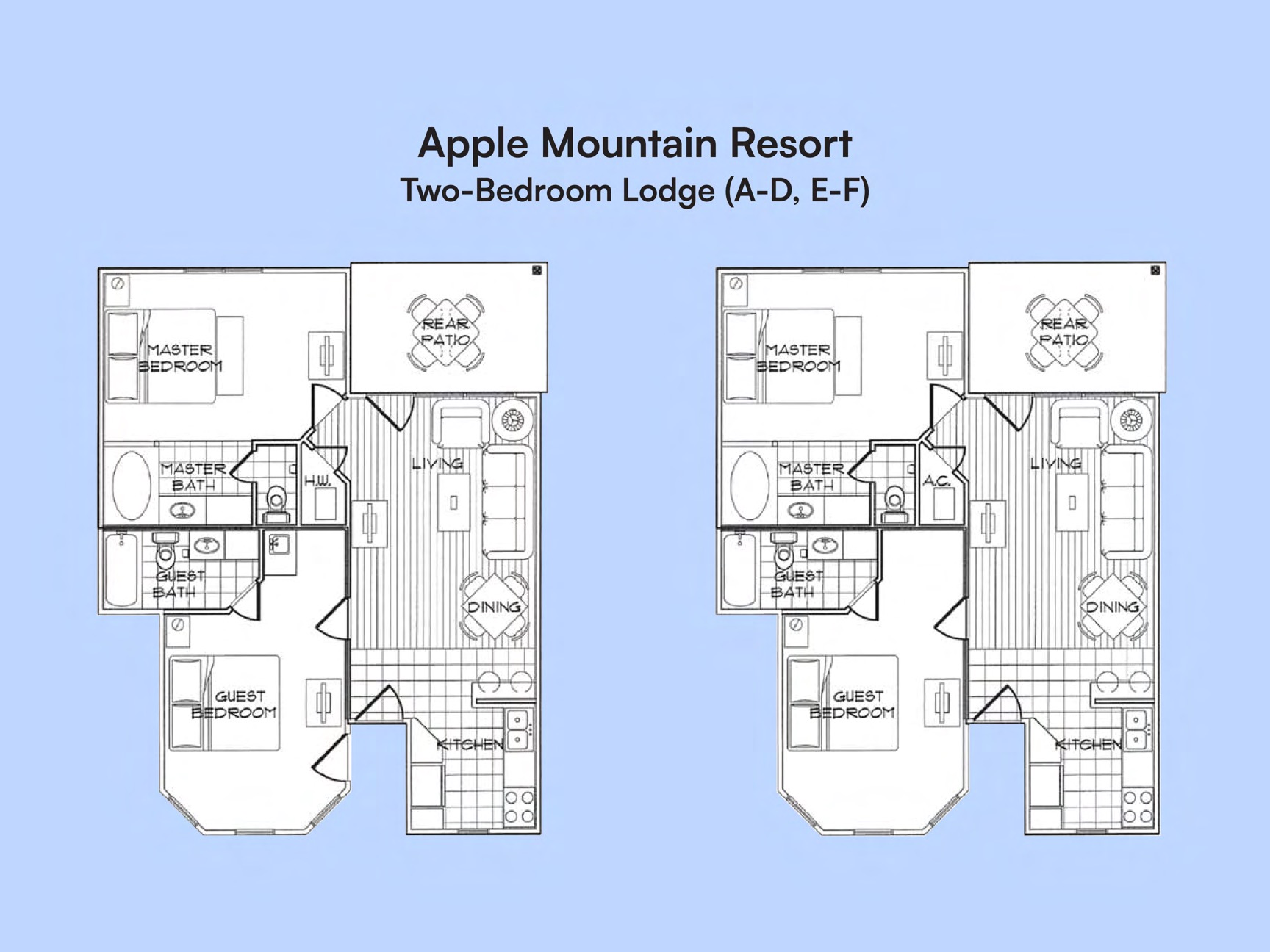 Two floor-plan templates cover the resort. Click to enlarge.