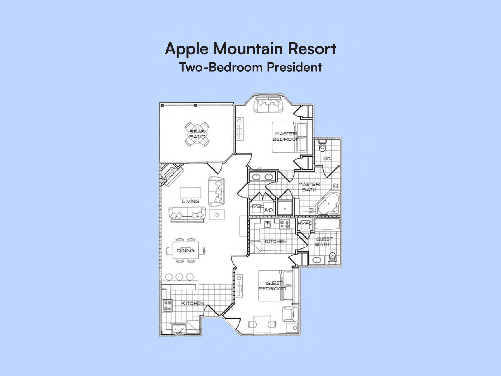 826 sq ft, 2 bedrooms, 2 baths. A straightforward apartment layout that gets you the full resort without a real cabin's maintenance list.